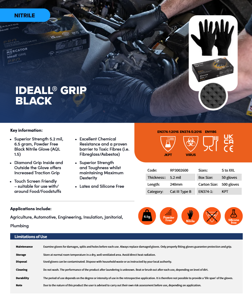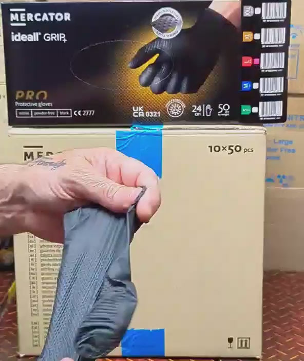 Mercator Ideall GRIP+ 5.2mil Heavy Duty | Black – Superior Protection & Advanced Grip Nitrile Gloves