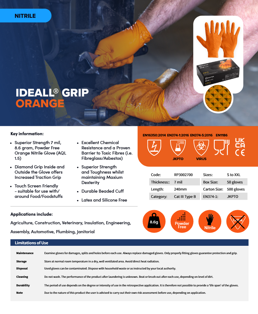 Mercator Ideall GRIP+ 7mil Heavy Duty | Orange – Ultimate Protection & Elite Grip Nitrile Gloves
