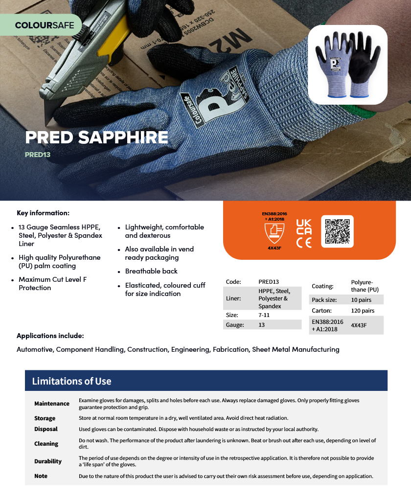 Engineered for professionals who demand cut-resistant protection, comfort, and durability, Predator SAPPHIRE gloves are built to withstand the toughest tasks—ensuring safety, productivity, and long-lasting performance.