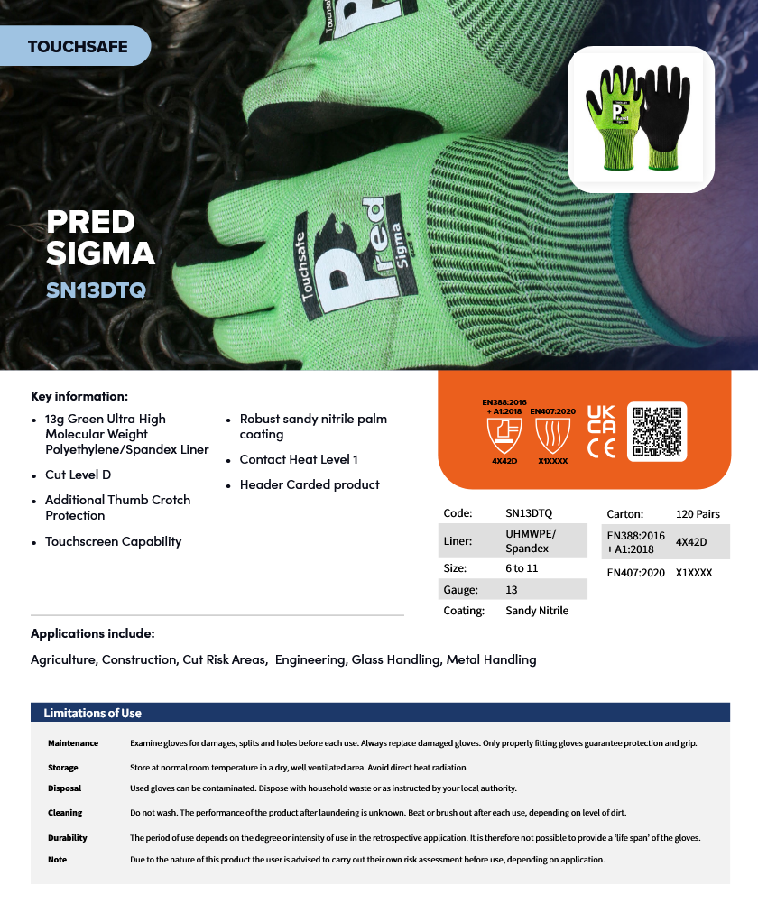 Engineered for professionals who demand cut-resistant protection, comfort, and versatility, Predator SIGMA gloves are designed to withstand tough tasks, keep you safe, and allow seamless interaction with touchscreen devices in the workplace.