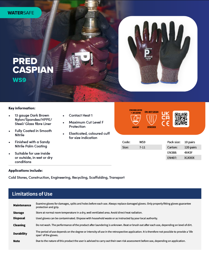 Designed for professionals needing maximum cut protection combined with reliable heat resistance and waterproof performance, the Predator Caspian gloves deliver top-tier safety and comfort across a wide range of tough working conditions.