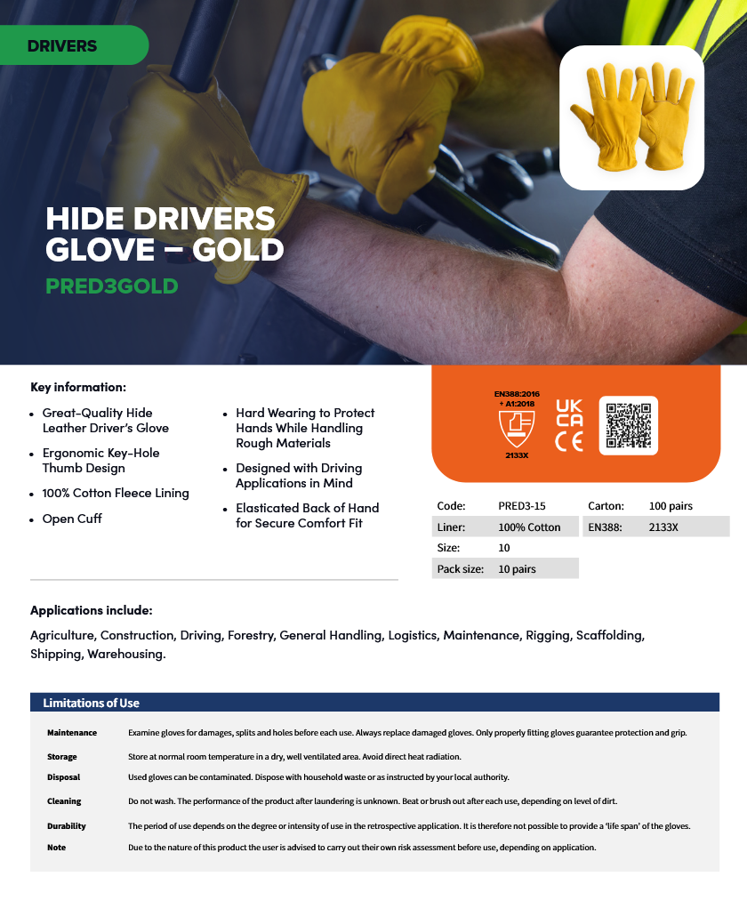 Predator GOLD Drivers Gloves | Premium Hide Leather Work Gloves – Durable Comfort and Everyday Protection