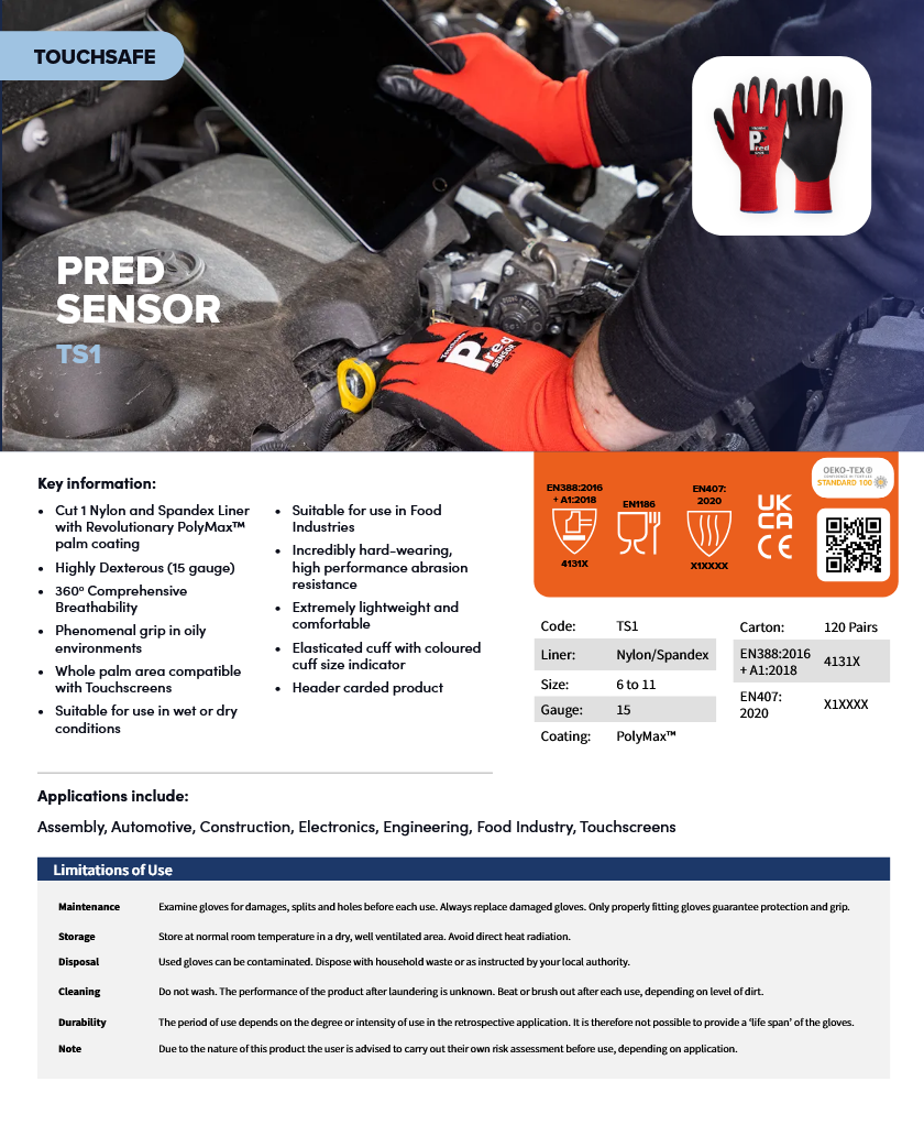 Created for certified food-safe environments where precision, comfort, and touchscreen compatibility matter, Predator SENSOR gloves let you work smarter, cleaner, and faster—without compromising on hygiene or dexterity.